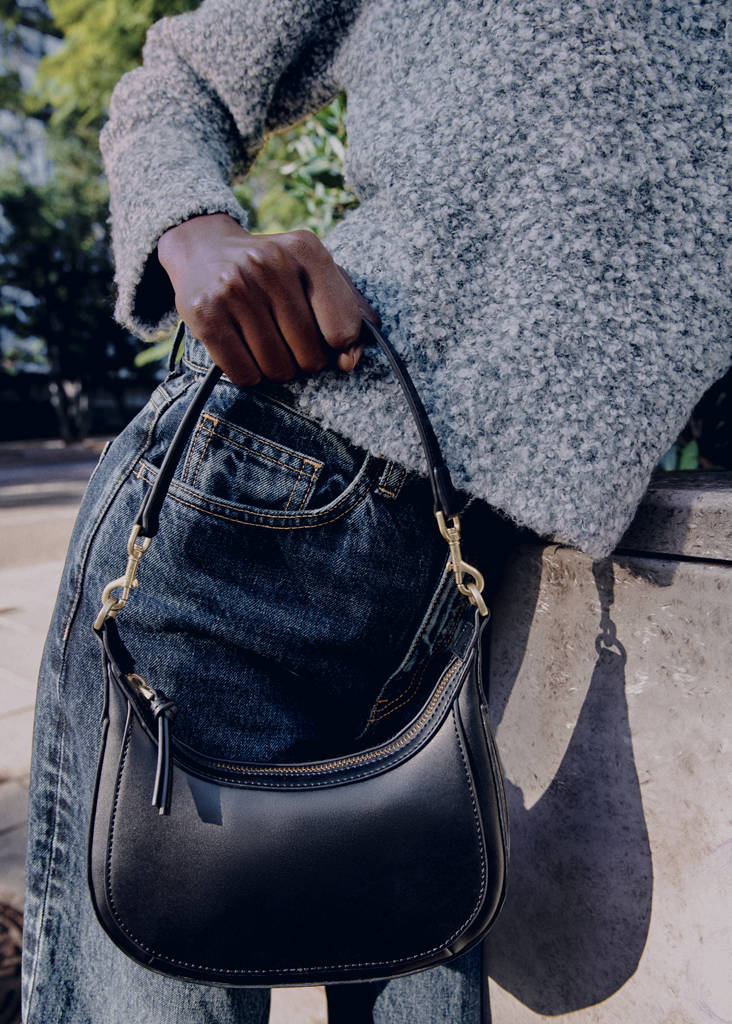 Tamaño mediano. Efecto piel. Asa larga ajustable y bandolera extraíble. Asa de hombro extraíble y regulable. Cierre de cremallera. Forro interior