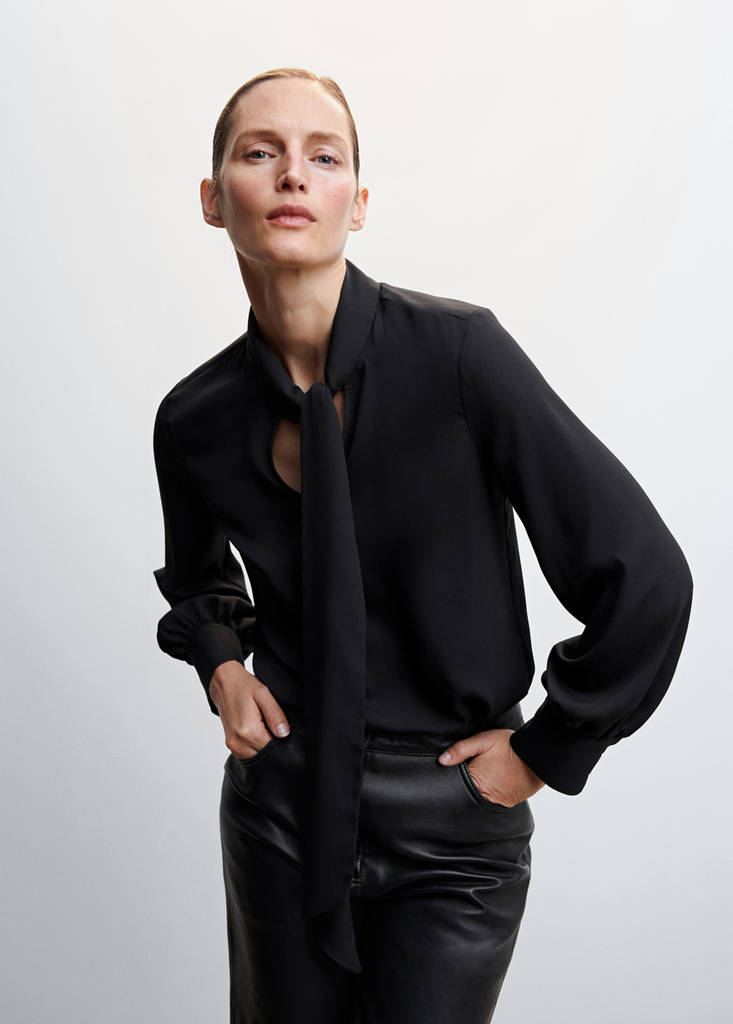 Tejido fluido. Diseño recto. Diseño largo. Cuello pico con lazo. Manga larga con puños abotonados. Cierre de lazo en el cuello. Colección fiesta y ceremonia. Disponible Plus