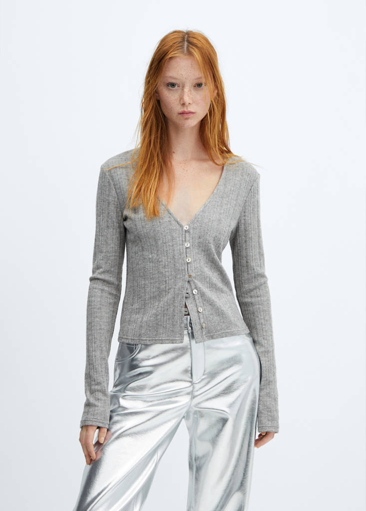 Tejido de punto fino. Diseño recto. Cuello redondo. Manga larga. Ribetes en relieve. Disponible Plus