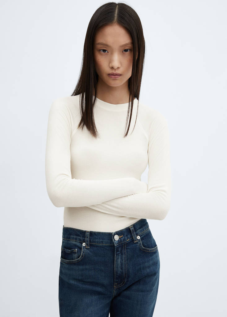 Tejido de canalé. Diseño recto. Cuello redondo. Manga larga