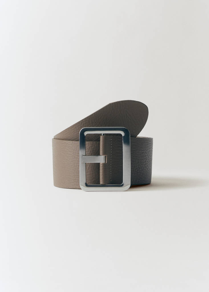 100% piel bovino. Diseño ancho. Hebilla metálica. Cierre de hebilla