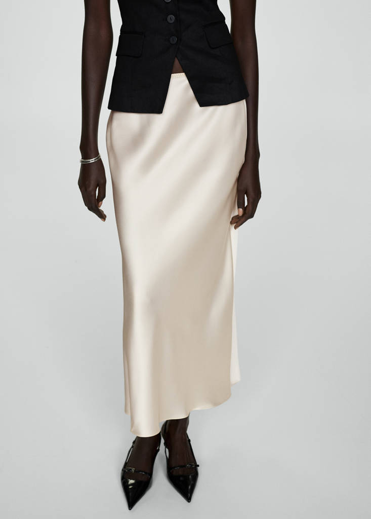 Tejido fluido. Tejido satinado. Diseño midi. Diseño recto. Goma elástica
