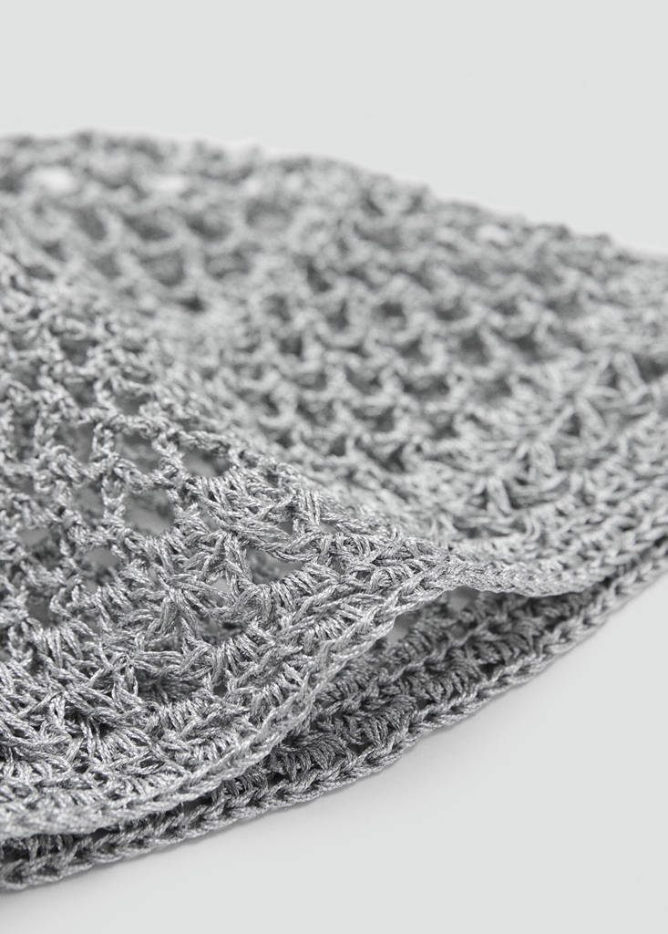 Gorro crochetPrecio actual [Ch$ 21.990,00 ]Ch$ 21.990,00Selecciona un colorGrisSelecciona tu tallaTalla únicaAñadir a FavoritosVer lookEnvío gratis a tiendaTejido de crochetDetalles, composición y cuidadosDisponibilidad en tienda