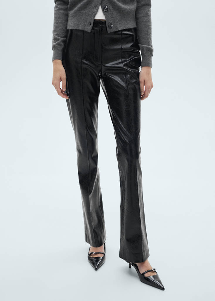 Efecto piel. Diseño largo. Corte skinny. Slim fit. Cierre oculto de botón, gancho y cremallera