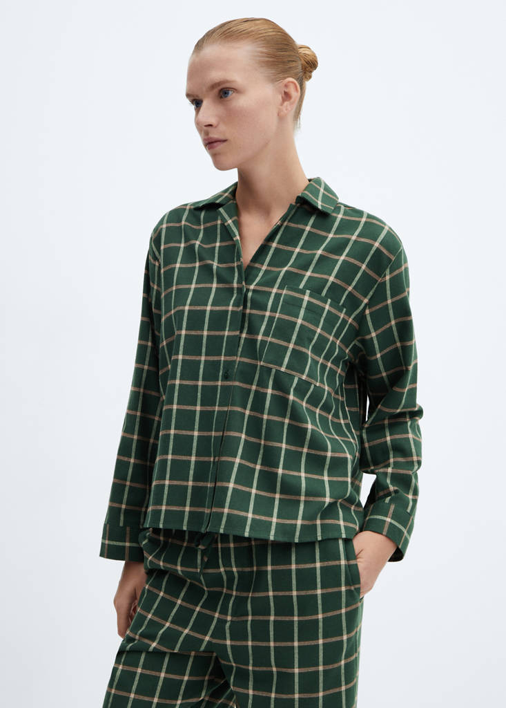 100% algodón. Tejido de franela. Diseño recto. Estampado de cuadros. Cuello camisero. Manga larga con puños abotonados. Bolsillo de parche en el pecho. Total look. Cierre delantero con botones