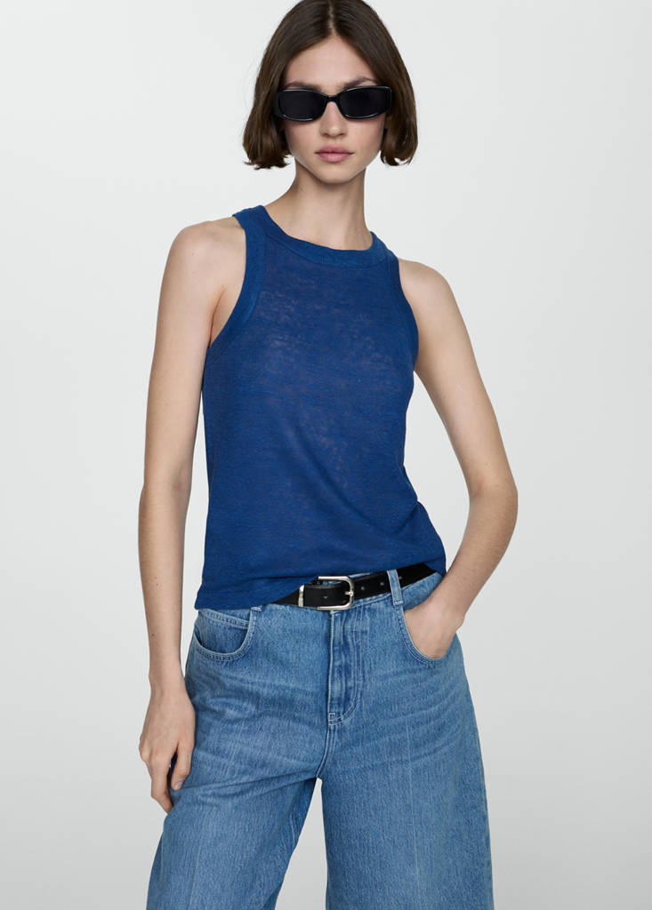 100% Lino. Slim fit. Diseño recto. Cuello redondo. Sin mangas. Tirantes anchos. Sin cierre