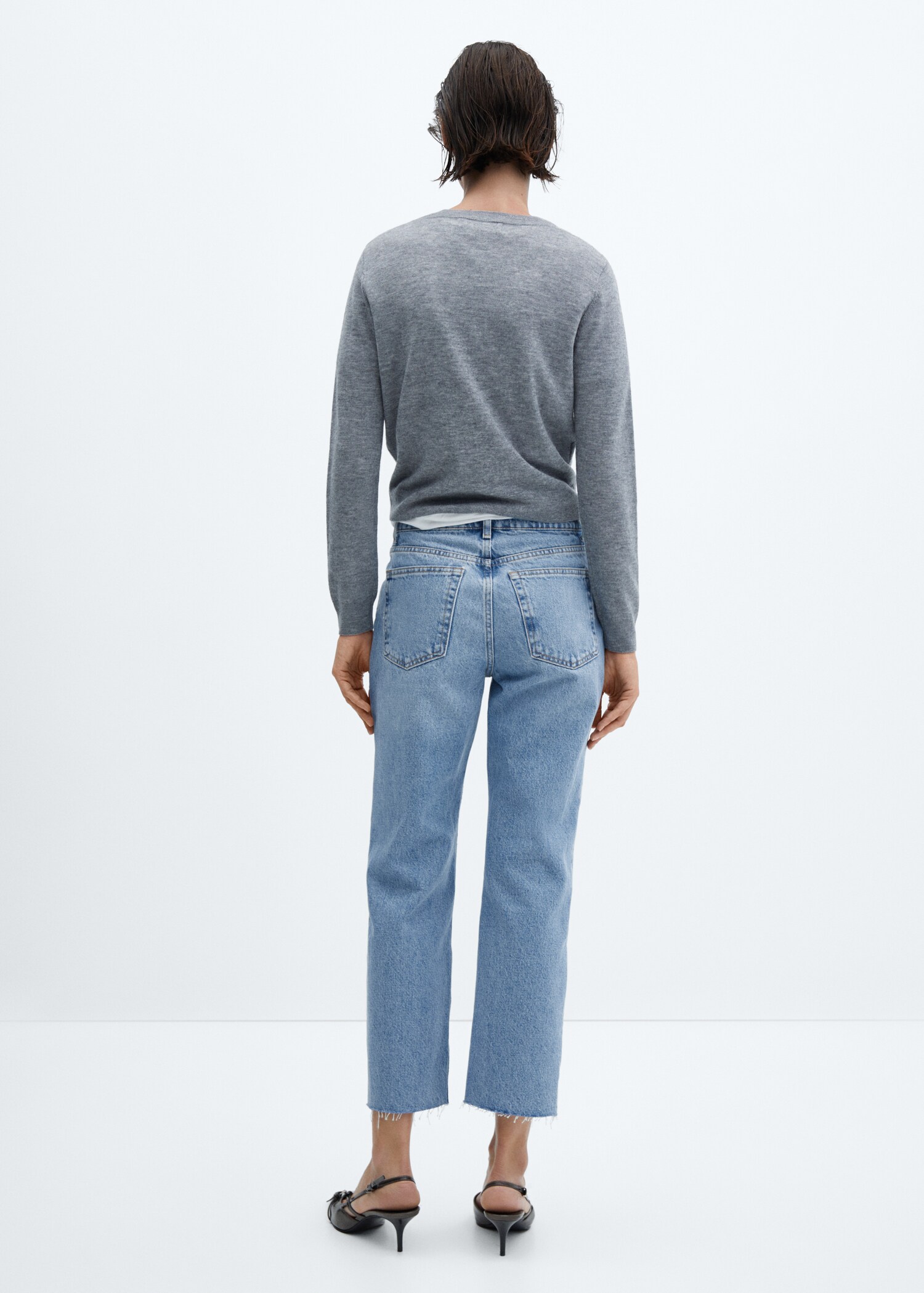 Tejido de algodón estilo tejano vaquero. Diseño recto. Diseño crop. Tiro alto. Cinco bolsillos. Trabillas. Cierre de cremallera y botón. Largo interior 68 cm. Disponible Plus.