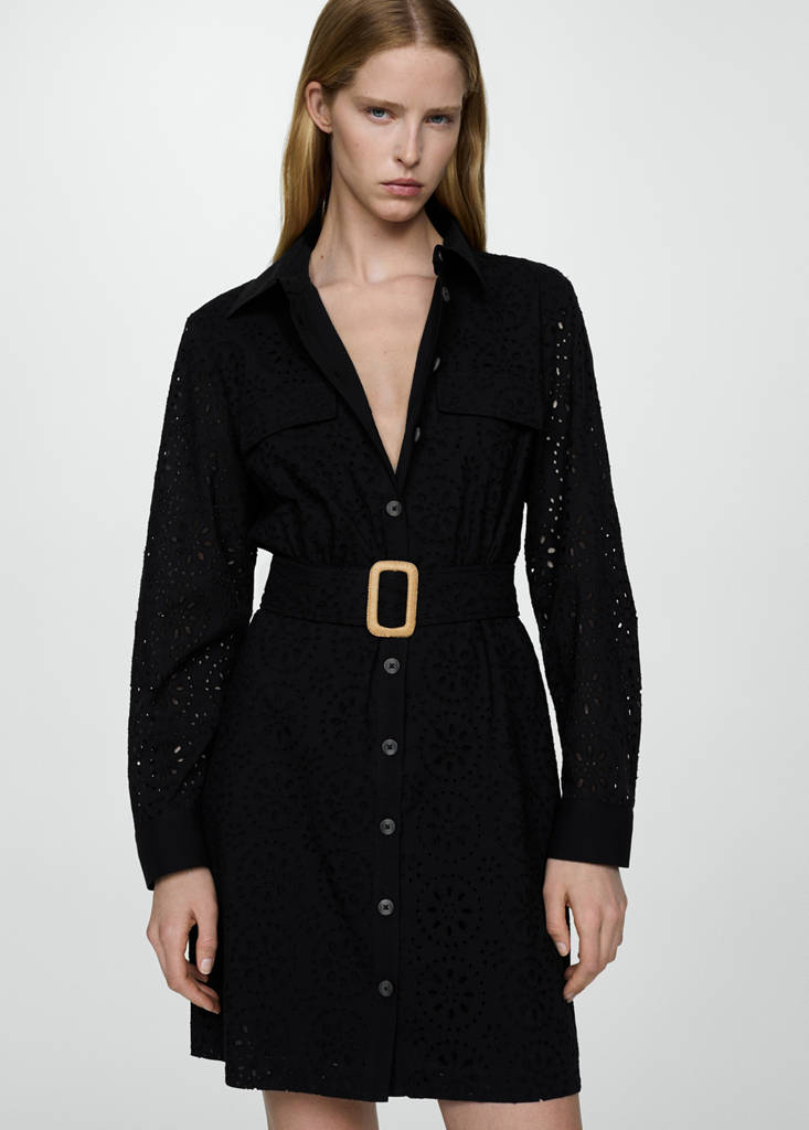 Tejido bordado. Diseño recto. Diseño corto. Cuello camisero. Manga larga. Solapas decorativas parte delantera. Trabillas. Cinturón ajustable. Forro interior. Disponible Plus. Tejido 100% algodón. Cierre delantero con botones