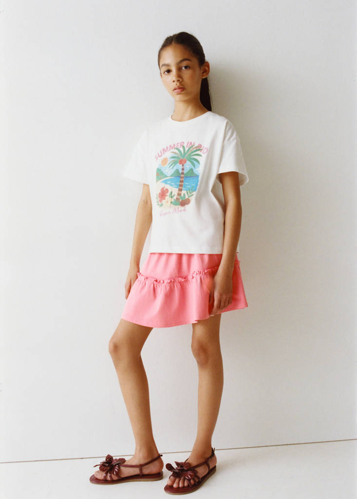 Crafted from 100% cotton fabric, this garment features an A-line and short design. The elasticated gathered waist ensures a comfortable fit, while the frill detail adds a distinctive touch.