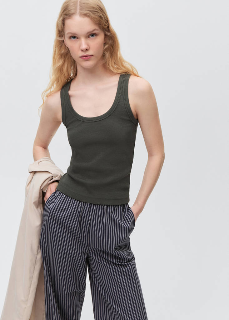 Ribbed topInitial price struck through [12,900 XAF ]12,900 XAFCurrent price [7,900 XAF ]7,900 XAF-39%Select a colourCharcoalSelect your sizeXXSNot available. I want it!XSNot available. I want it!SNot available. I want it!MNot available. I want it!LNot available. I want it!Notify meAdd to WishlistSee lookFree delivery to storeCotton fabric. Sleeveless. Round neckDetails, composition and careStore availabilityItem qualitiesRecycled cottonAt least 20%This fibre is obtained from pre- and post-consumer textile waste that is transformed into new fabrics.