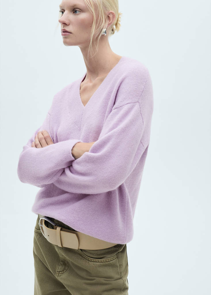 Oversized V-neck sweaterCurrent price [39,900 XAF ]39,900 XAFSelect a colourLight/Pastel PurpleThe model is wearing size S and is 179cm tall.Select your sizeXSNot available. I want it!SNot available. I want it!MNot available. I want it!LNot available. I want it!XLNot available. I want it!MeasurementsNotify meAdd to WishlistSee lookFree delivery to storeKnit fabric. Midpoint. Oversized design. V-neck. Long sleeves. No FasteningDetails, composition and careStore availability