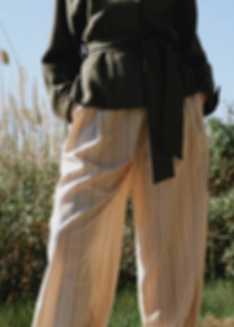 Tissu 100 % lin. Design oversize. Col montant. Manches longues avec poignet à lanière boutonnée. Fermeture Éclair dissimulée. Détail ceinture à la taille. Passants de ceinture. Doublure intérieure