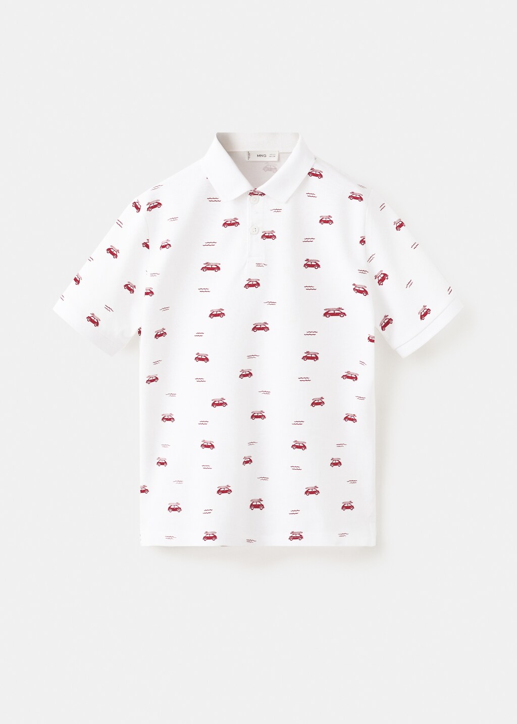 100% cotton fabric. Straight design. Printed design. Shirt collar. Button fastening at the neck. Short sleeves.