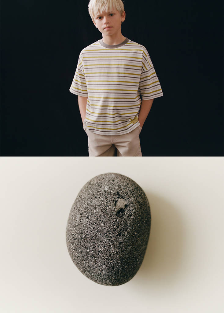 100% cotton fabric. Straight design. Combined striped print. Contrast round neck. Short sleeves
