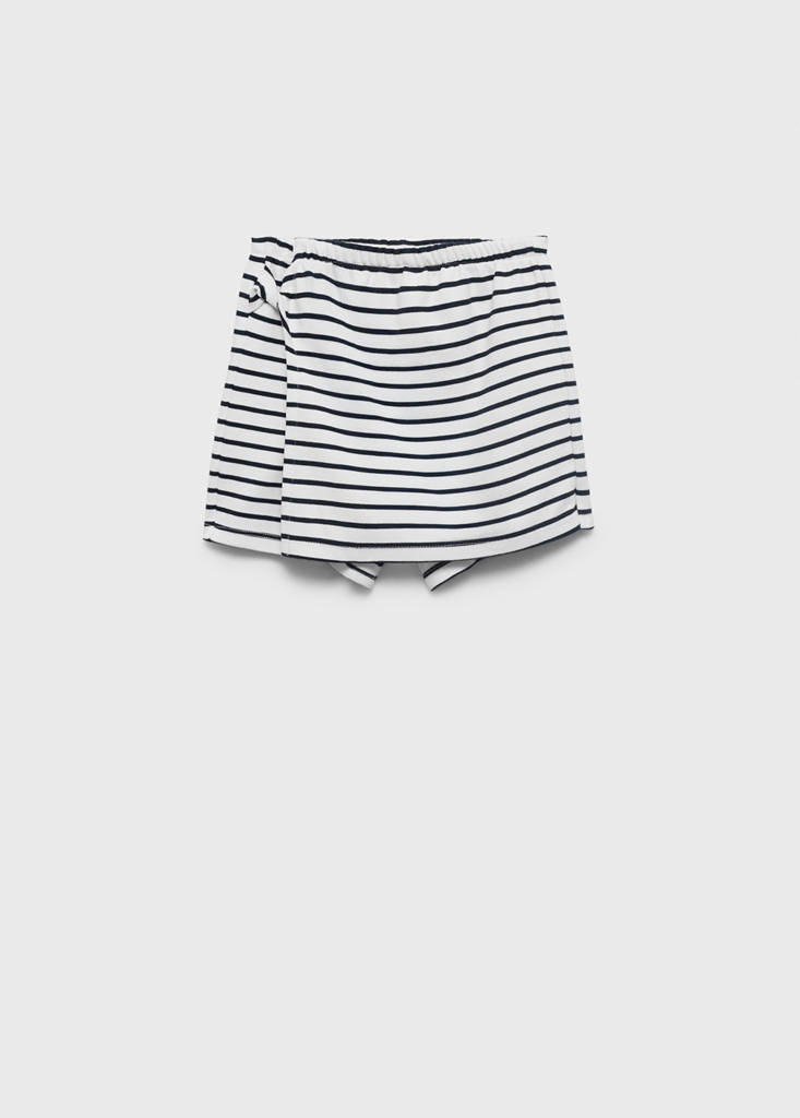 100% Cotton. Striped design. Straight design. Skort design. Wrap design. Elastic waist at the back