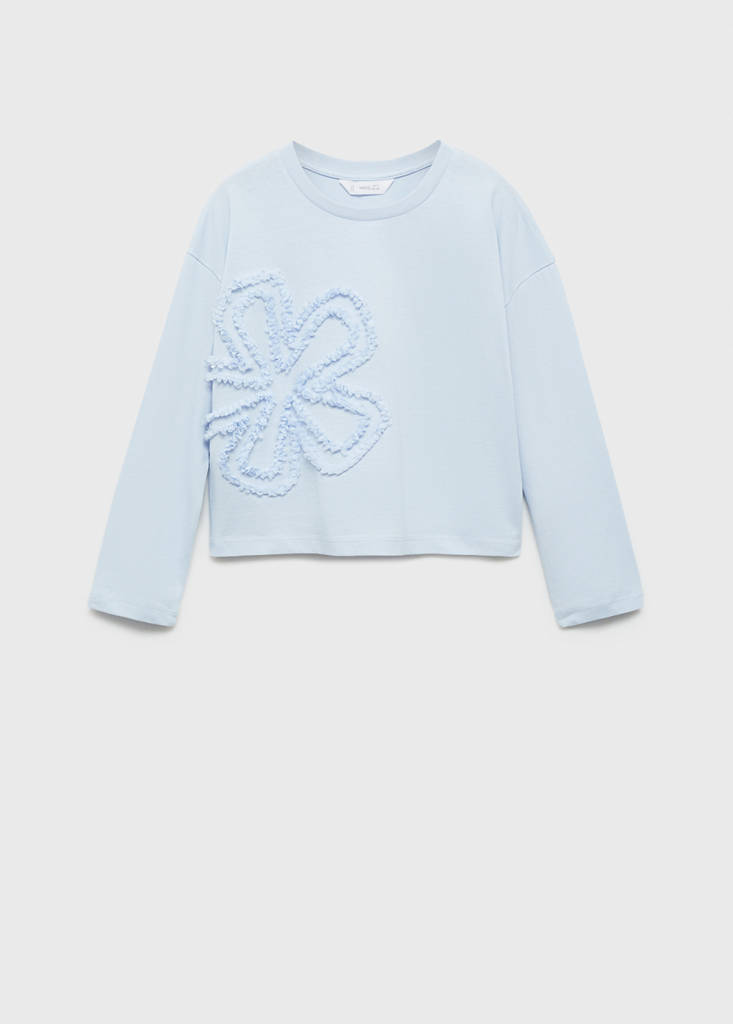 Embroidered detail T-shirtCurrent price [¥179.00 ]¥179.00Select a colourSky BlueSelect your size120/64130/68140/72150/76160/80DimensionsAdd to WishlistSee lookFree delivery to storeBack to class. Fabric with cotton. Straight design. Embroidered detail. Butterfly print. Round neck. Long sleevesDetails, composition and careStore availabilityItem qualitiesRecycled cottonAt least 20%This fibre is obtained from pre- and post-consumer textile waste that is transformed into new fabrics.