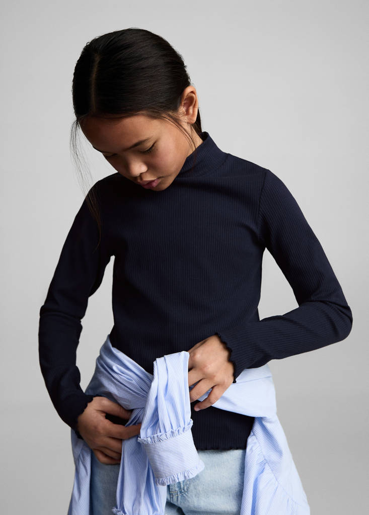 Fabric with cotton. Ribbed design. Straight design. Standard Length. Long Sleeve Length. Flat structure Lightweight. Slim Silhouette. Neck lapel Swan. Slim fit. High neck. Long sleeves