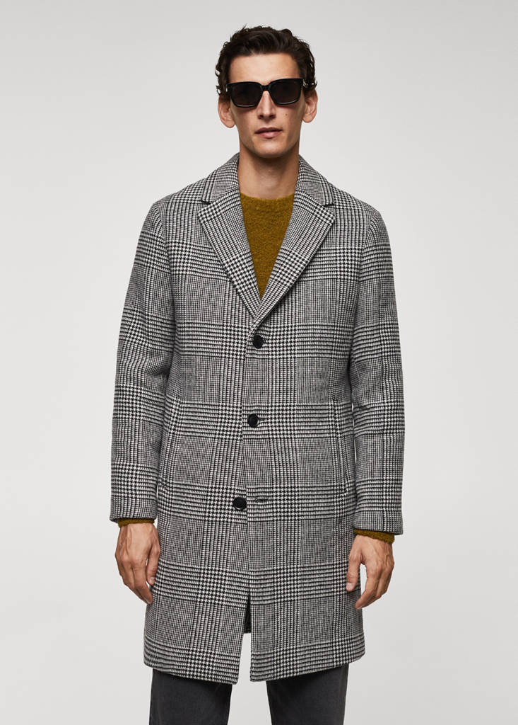 Wool mix fabric. Regular fit. Prince of Wales check print. Notched lapel collar. Long sleeves. Back vent at the hem. Inner lining. Interior pocket. Front closure with buttons. Two front welt pockets