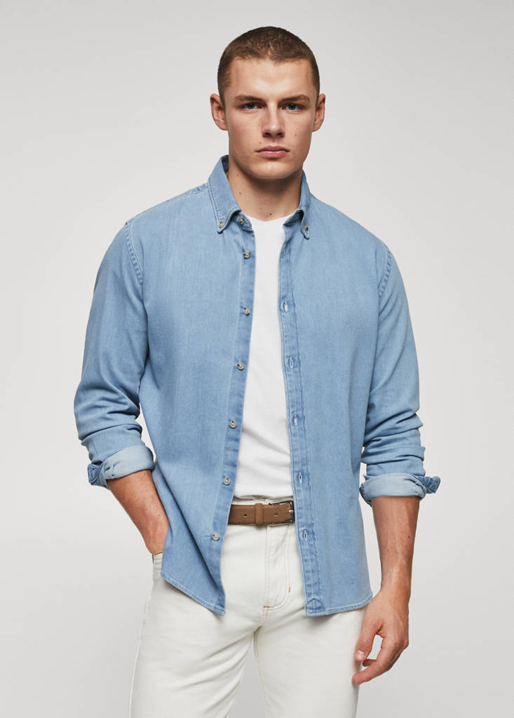 Slim-fit denim shirtCurrent price [¥499.00 ]¥499.00Select a colourLight BlueThe model is wearing size 180/100A (M) and is 183cm tall.Select your size175/92A (XS)180/96A (S)180/100A (M)185/104A (L)190/108A (XL)190/112A (XXL)DimensionsAdd to WishlistSee lookFree delivery to storeSlim fit. Denim style cotton fabric. Buttoned collar. Long buttoned sleeve. Button up. The model is 180 cm and is wearing a size M. Basics CollectionDetails, composition and careStore availability