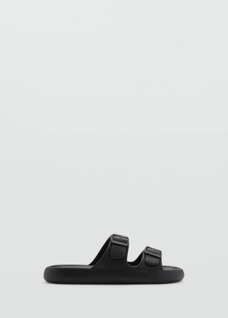 Double-buckle rubber sandalsCurrent price [¥259.00 ]¥259.00Select a colourBlackSelect your size260/78270/96285/98295/100DimensionsAdd to WishlistSee lookFree delivery to storeFlip-flop sandals. Double buckle closure. Adjustable fastening strips. Rubber cut. Round toe. Rubber soleDetails, composition and careStore availability