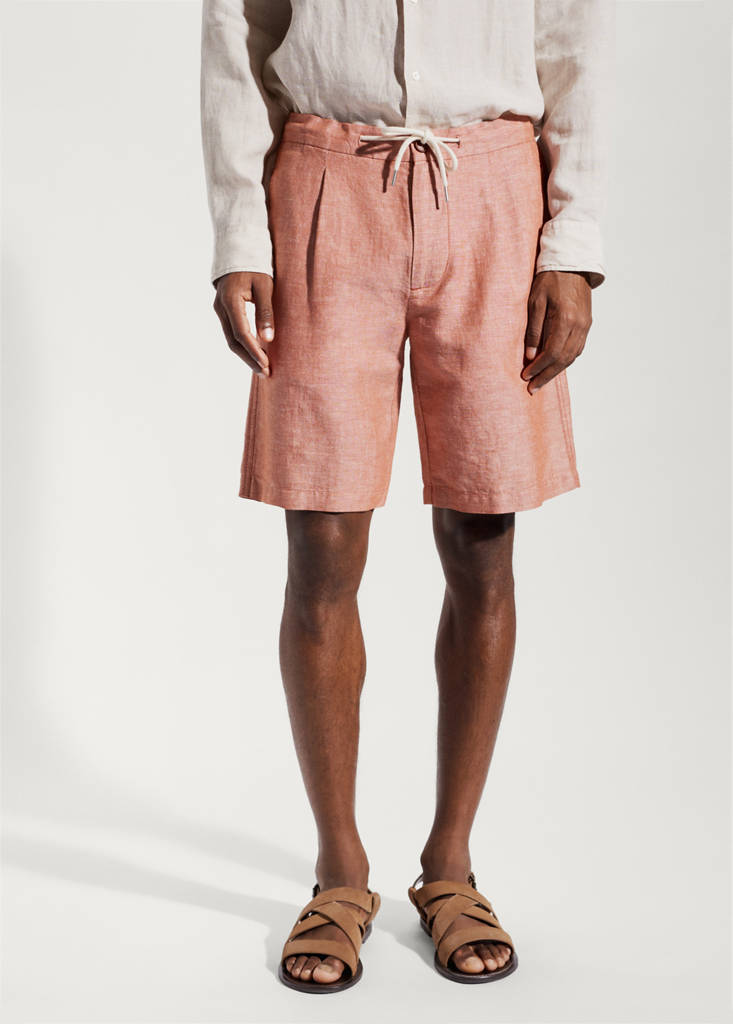Drawstring linen Bermuda shorts