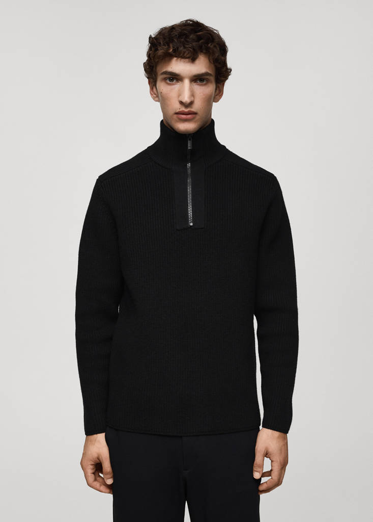 Performance Collection. Coolmax® is a special fabric that helps to expel moisture from the skin. In cold climates, keeps the body dry and warm, and in hot climates, it stands out for its lightness and freshness. Non iron: garment that does not require ironing, made of a crease-resistant fabric. Breathable: This fabric helps regulate body temperature by allowing moisture to escape. Comfort: Horizontal and vertical stretch fabric for added comfort. Wool mix fabric. Chunky knit fabric. Cable knit design. Perkins collar with zip closure. Long sleeves. Straight hem