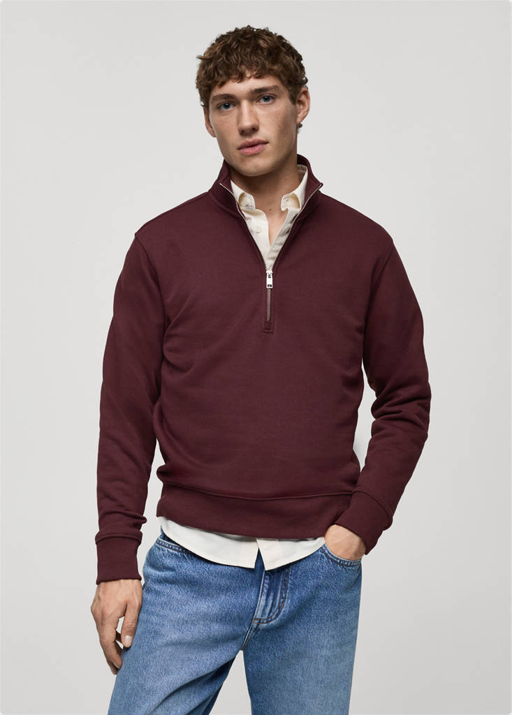 Regular fit. Cotton blend fabric with brushed interior. Perkins collar with zip closure. Ribbed cuffs and hem. Straight hem. Cinnamon color is exclusive online. Cotton fabric. The black and green models are online exclusives. Contrast ribbed cuffs and hem