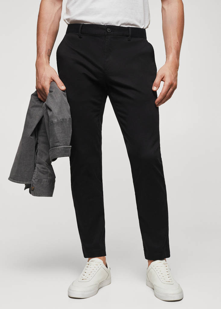 Basics Collection. Tapered fit: wide cut at the top that narrows from the knee to the ankle. Sustainable cotton blend fabric. Belt loops. Elasticated waistband. Two side pockets. Two pockets with buttoned flaps on the back. Zip and button fastening. The model is wearing a size 42. Crop design. Chinos style. Side pockets. Coin pocket. Button and lace closure. Elastic band. Lightweight fabric. Cotton fabric. Belt loops. Waist with adjustable inner cord. Soft elastic at front side waistband for added comfort and support the growing bump. Coin pocket at hip height. Two front pockets. Cotton and polyester blend fabric. Slim fit. Floral print. Button up. Short sleeves. Classic collar