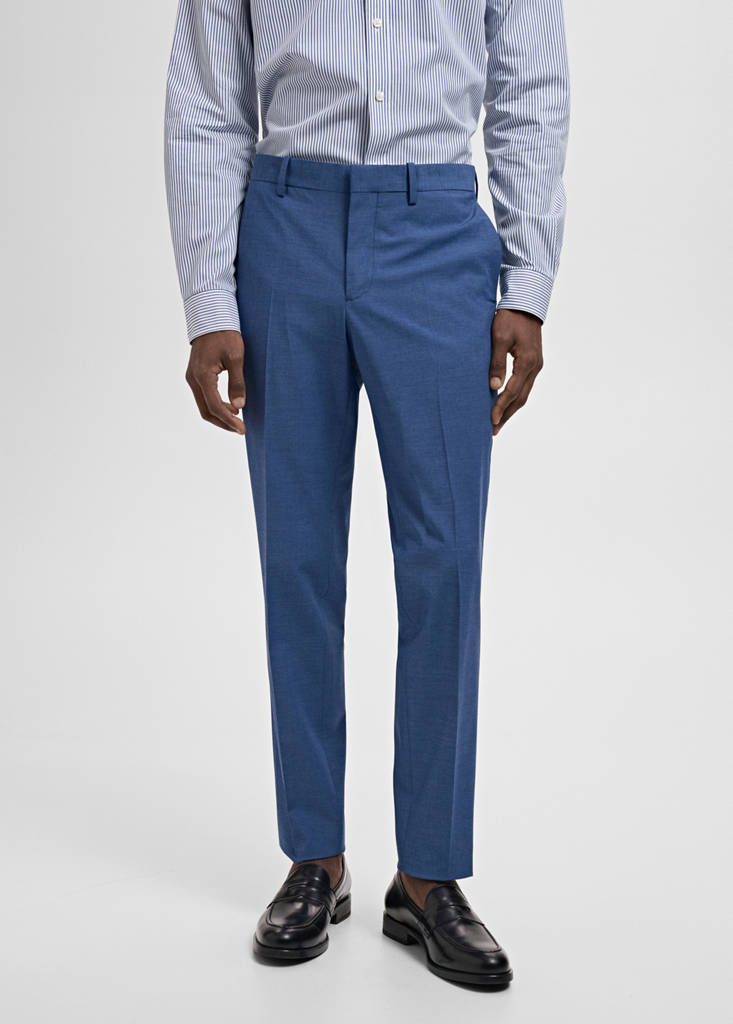 Slim fit. Tailoring collection. Belt loops. Front fastening with double-breasted buttons and zip. Side pockets. Welt pocket with button on the back. Pressed crease detail at the front and back