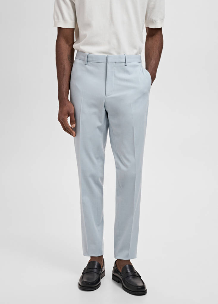 Slim fit. Tailoring collection. Belt loops. Front fastening with double-breasted buttons and zip. Side pockets. Welt pocket with button on the back. Pressed crease detail at the front and back