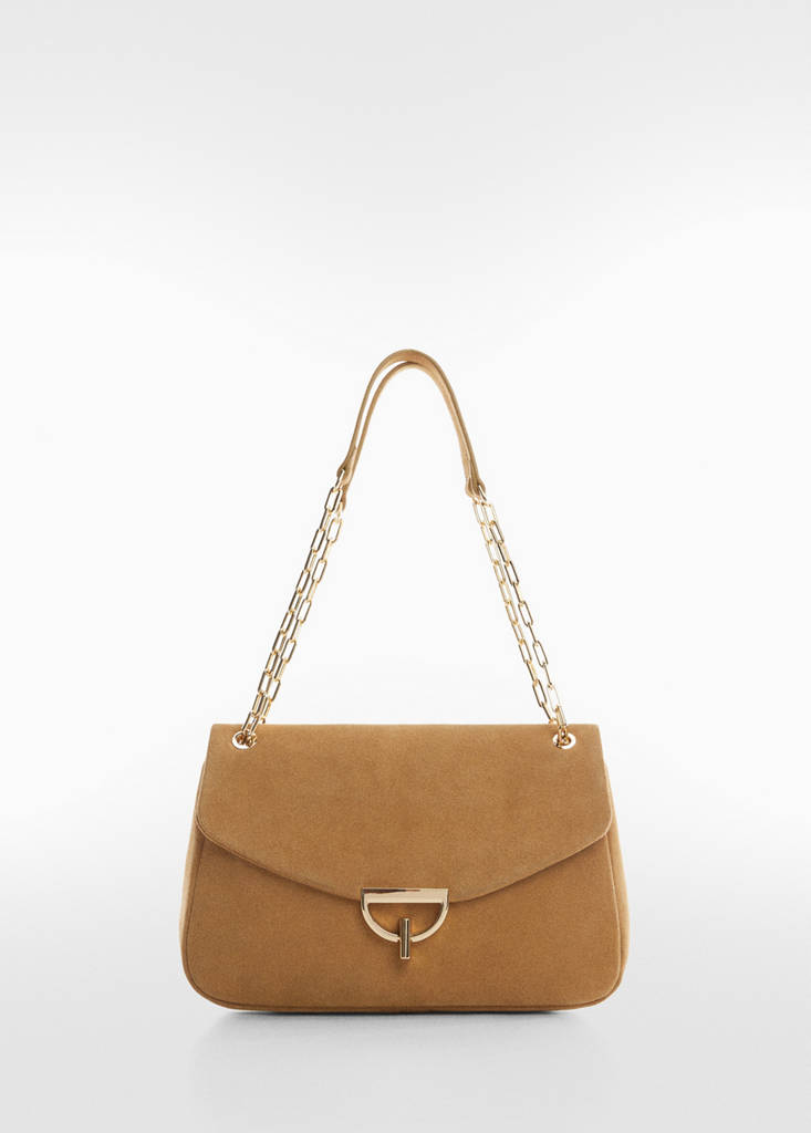100% Suede. Medium. Metallic fastening. Long adjustable strap. Chain strap. Inner zipped pocket. Inner lining