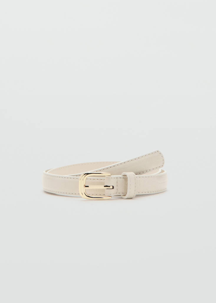 New NowThin faux crocodile leather beltCurrent price [¥159.00 ]¥159.00Select a colourEcruSelect your size758595105DimensionsAdd to WishlistSee lookFree delivery to storeSlim design. Crocodile skin. Square metallic buckle closeDetails, composition and careStore availability