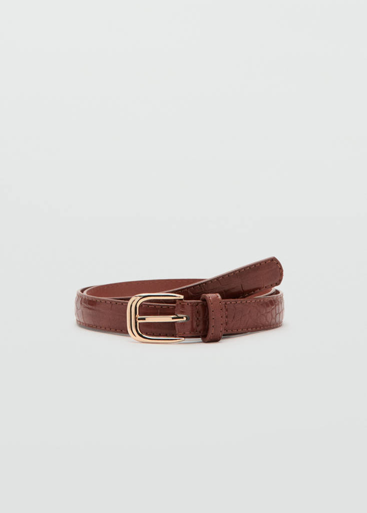 New NowThin faux crocodile leather beltCurrent price [¥159.00 ]¥159.00Select a colourBrownSelect your size758595105DimensionsAdd to WishlistSee lookFree delivery to storeSlim design. Crocodile skin. Square metallic buckle closeDetails, composition and careStore availability