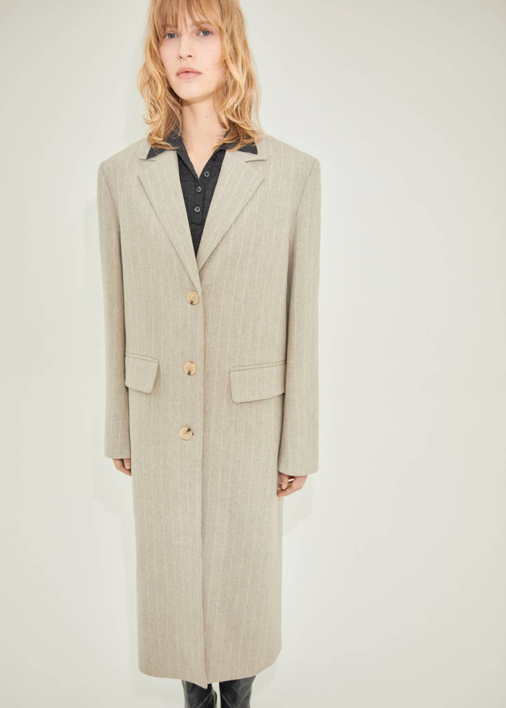 Premium quality. Wool fabric. Straight design. Long design. Notched lapel collar. Lapel with notch. Long sleeves. Two side pockets with flaps. Back vent at the hem. Inner lining. Tortoiseshell effect buttons. Selection Collection. Front closure with buttons