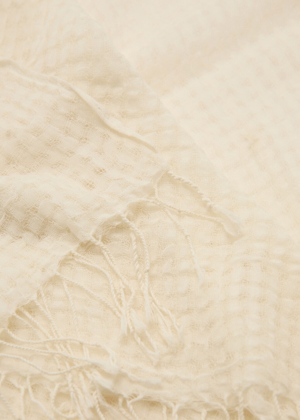 New NowCotton fringed scarfCurrent price [¥259.00 ]¥259.00Select a colourEcruSelect your sizeOne sizeAdd to WishlistFree delivery to storeSee availability in storeDescriptionCotton fabric. Fringe detail on the hem.See detailsItem qualitiesRecycled cotton100%This fibre is obtained from pre- and post-consumer textile waste that is transformed into new fabrics.Share