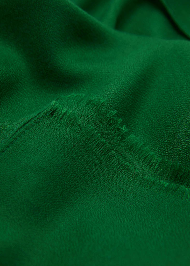 Flowy scarfCurrent price [¥159.00 ]¥159.00Select a colourGreenSelect your sizeOne sizeAdd to WishlistSee lookFree delivery to storeFluid fabric. Frayed finish. Frayed hemRecycled polyester is obtained from polyester textile waste, marine litter or PET plastic bottles that are used to produce new fabric.190.0x90.0 cmDetails, composition and careStore availability