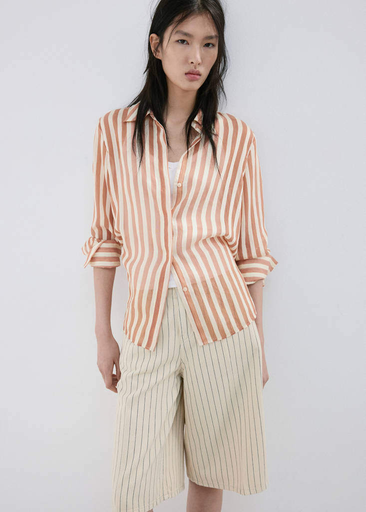 New NowSemi-transparent striped lyocell shirtCurrent price [¥359.00 ]¥359.00Select a colourBrownThe model is wearing size 160/84A (M) and is 178cm tall.Select your size155/80A (S)160/84A (M)165/88A (L)170/92A (XL)175/96A (XXL)DimensionsAdd to WishlistSee lookFree delivery to storeLyocell fabric. Semi-transparent fabric. Striped print. Shirt collar. Long sleeves with buttoned cuffs. Front closure with buttons. Available PlusDetails, composition and careStore availability