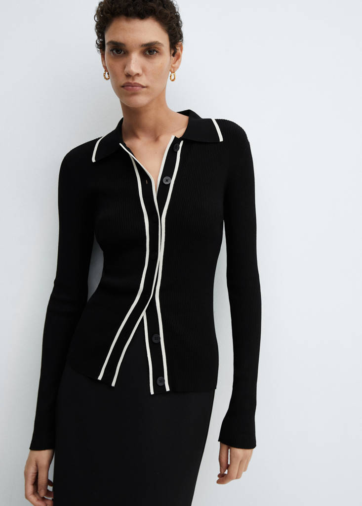 Contrast trims cardiganCurrent price [¥299.00 ]¥299.00Select a colourBlackThe model is wearing size 160/84A (M) and is 176cm tall.Select your size155/78A (XS)155/80A (S)160/84A (M)165/88A (L)170/92A (XL)175/96A (XXL)175/100A (3XL)DimensionsAdd to WishlistSee lookFree delivery to storeFine-knit fabric. Straight design. Polo collar. Long sleeves. Contrast trims. Front closure with buttonsDetails, composition and careStore availability