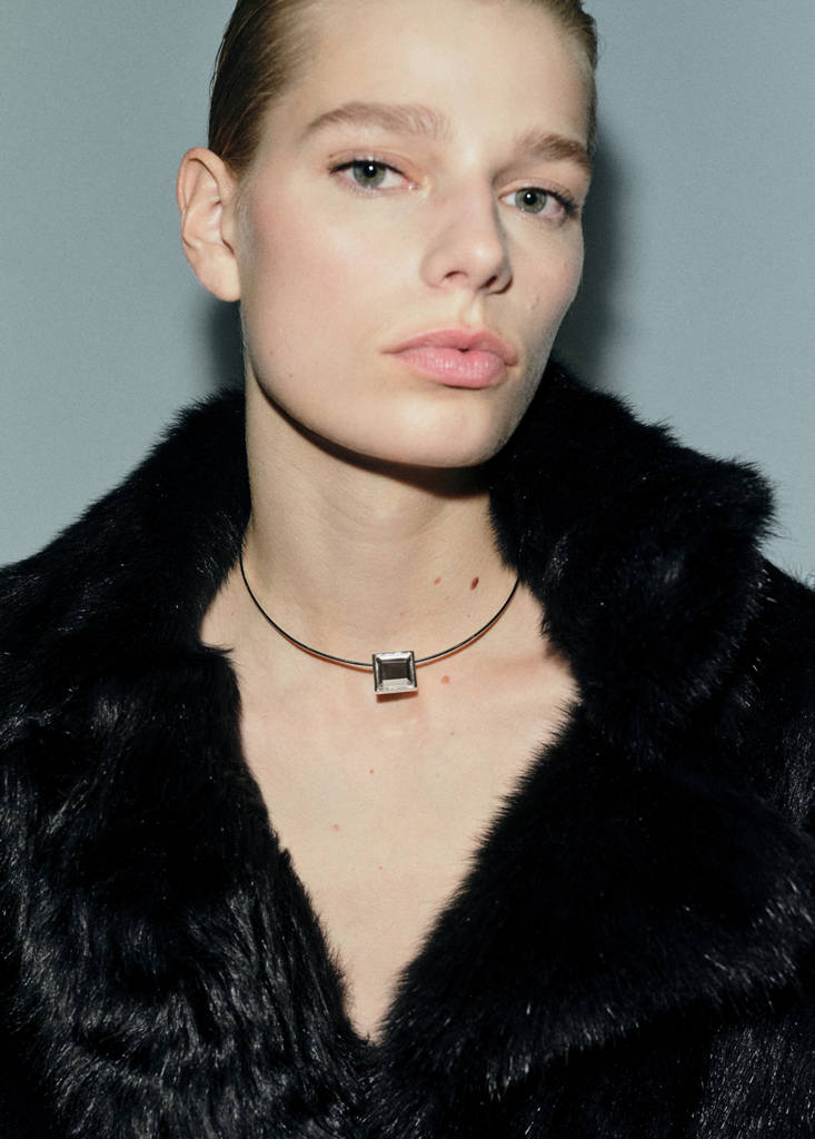 硬质设计. 水晶饰珠. 金属质感系扣.