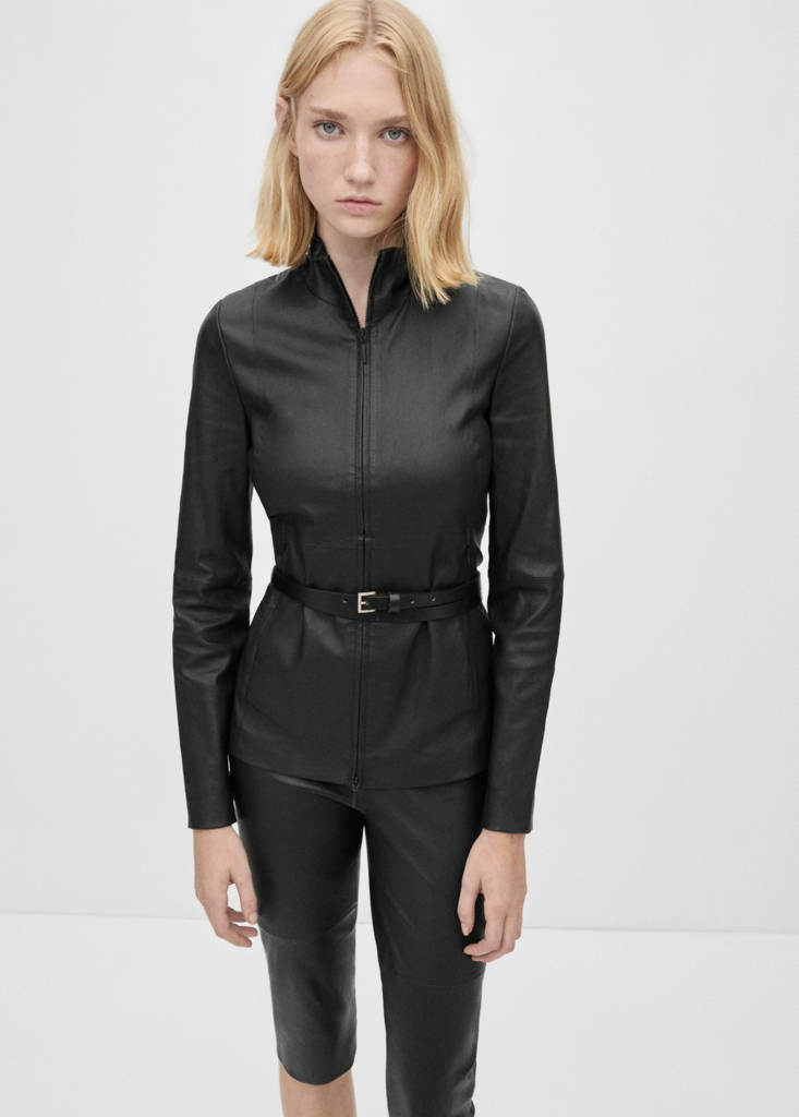 Selection / 皮革双层拉链修身皮夹克当前价格 [¥3,499.00 ]¥3,499.00选择颜色黑色模特穿着160/84A (M)码,身高178cm 。选择尺码155/80A (S)160/84A (M)165/88A (L)170/92A (XL)175/96A (XXL)测量添加到愿望清单查看造型免费送货到商店长袖. 高领. 精选系列. 100% 羊皮. 修身设计. 双拉链闭合. 直筒设计精选的精致服装,用优质材料制成,为特殊场合创造一个现代柔美的衣橱。细节、成分和护理说明门店库存 我们的材料皮革100%耐用、柔软、高品质。这款皮革经过特殊处理,呈现出水洗般的做旧质感,使其外观独具匠心。