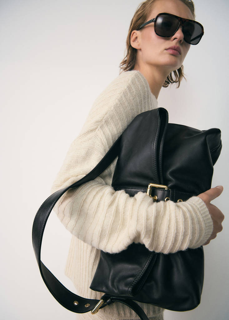 搭扣皮包当前价格 [¥1,699.00 ]¥1,699.00选择颜色黑色选择尺码均码添加到愿望清单查看造型免费送货到商店100%牛皮. 大尺寸. 搭扣闭合. 可调节肩带. 内衬38.0x25.0x9.0 cm (长×高×宽)细节、成分和护理说明门店库存 我们的材料皮革100%耐用、柔软、高品质。这款皮革经过特殊处理,呈现出水洗般的做旧质感,使其外观独具匠心。