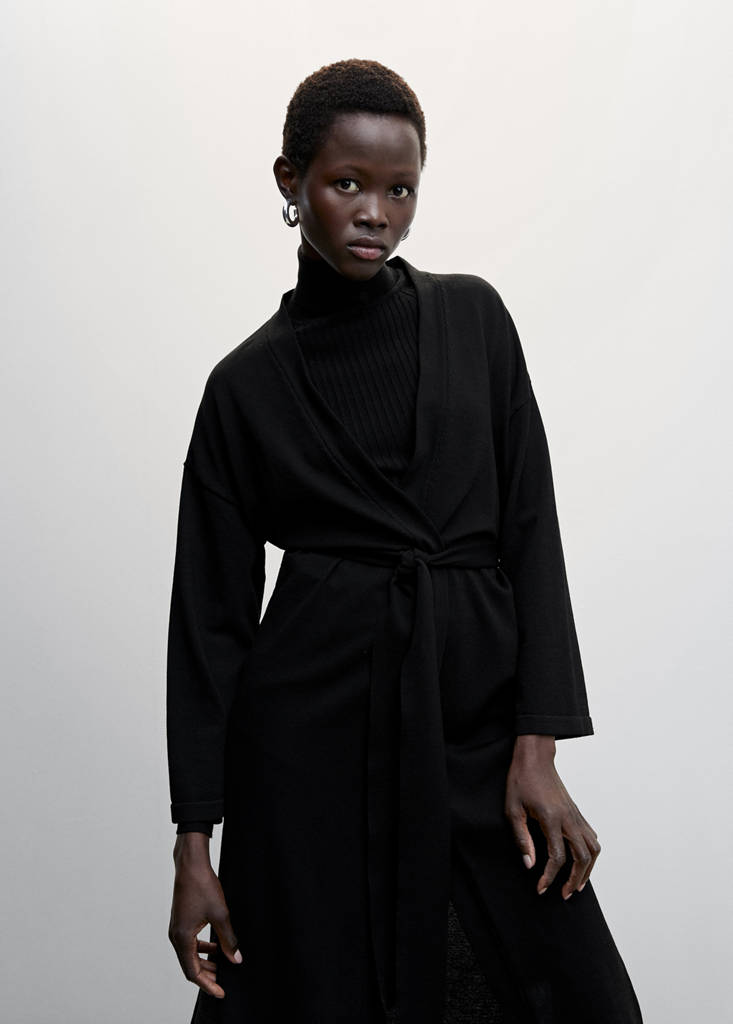 蝴蝶结长款开衫当前价格 [¥659.00 ]¥659.00选择颜色黑色选择尺码160/84A (M)165/88A (L)170/92A (XL)175/96A (XXL)测量添加到愿望清单查看造型免费送货到商店细线针织面料. 长款设计. 长袖. 系带. 两件式套装细节、成分和护理说明门店库存