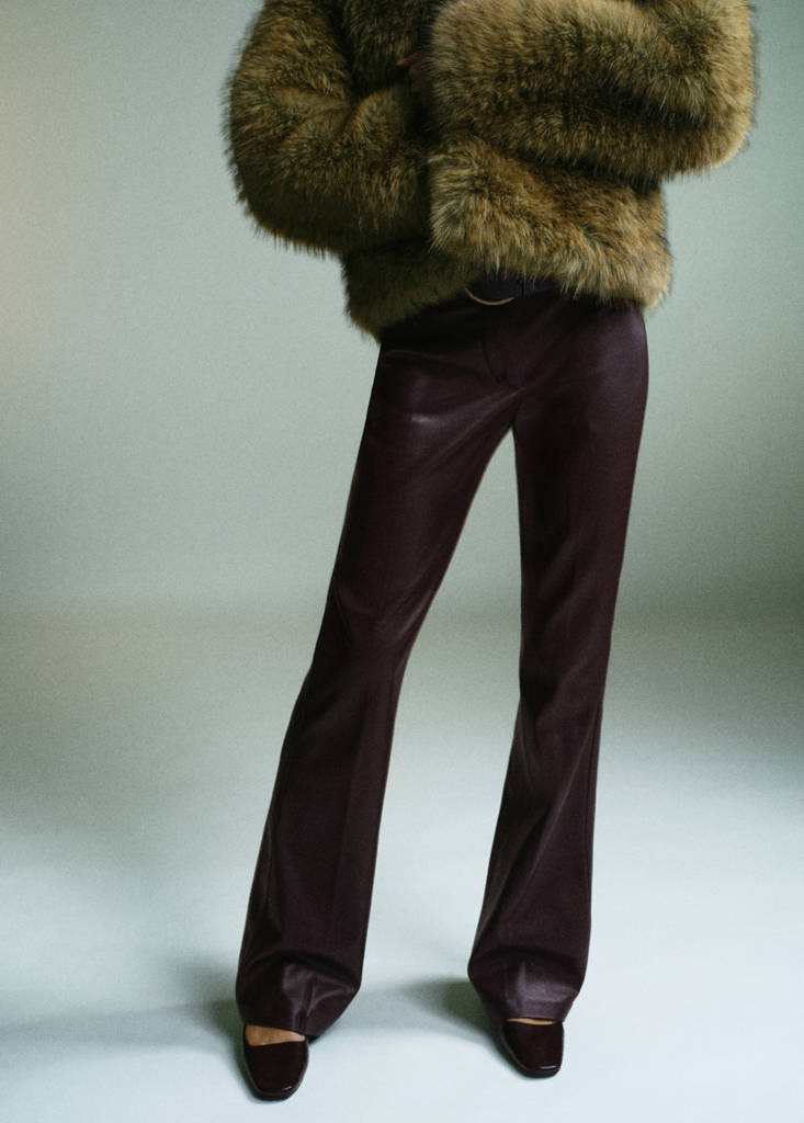 皮革质感喇叭裤当前价格 [¥499.00 ]¥499.00选择颜色酒红色模特穿着160/64A (36)码,身高181cm 。选择尺码155/58A (32)155/62A (34)160/64A (36)165/68A (38)170/72A (40)170/74A (42)测量添加到愿望清单查看造型免费送货到商店皮革效果. 长款设计. 修身设计. 喇叭设计. 低腰. 系钩针,开拉链. 绿色为线上专属细节、成分和护理说明门店库存