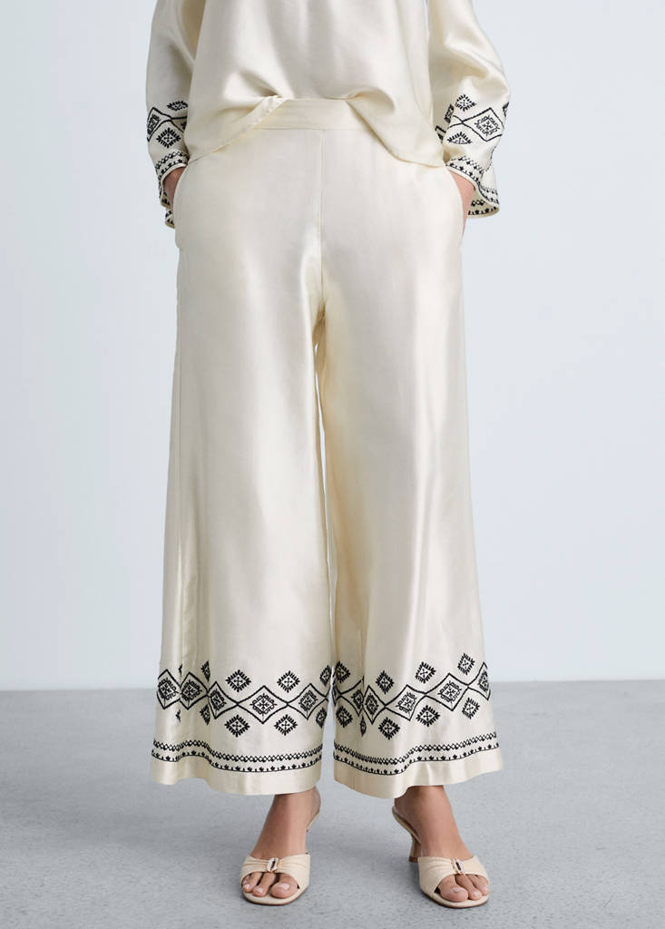 刺绣裤腿阔腿裤当前价格 [¥599.00 ]¥599.00选择颜色米色模特穿着160/64A (M)码,身高179cm 。选择尺码155/60A (S)160/64A (M)165/68A (L)170/74A (XL)175/80A (XXL)测量添加到愿望清单查看造型免费送货到商店棉混纺面料. 缎面织物. 宽腿设计. 高腰. 松紧腰身. 下摆有装饰性刺绣. 无扣设计. 整体造型细节、成分和护理说明门店库存