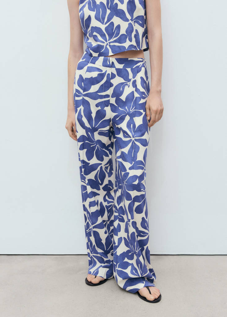 亚麻混纺印花长裤当前价格 [¥399.00 ]¥399.00选择颜色蓝色模特穿着160/64A (36)码,身高176cm 。选择尺码155/58A (32)155/62A (34)160/64A (36)165/68A (38)170/72A (40)170/74A (42)175/78A (44)测量添加到愿望清单查看造型免费送货到商店长款设计. 直筒设计. 花卉印花. 中腰. 褶缝细节. 两个侧袋. 系隐形纽扣,系钩针,开拉链. 整体造型细节、成分和护理说明门店库存 我们的材料亚麻布至少20%天然、透气、轻盈。亚麻是炎热潮湿气候下最舒适的纤维;速干且保暖。