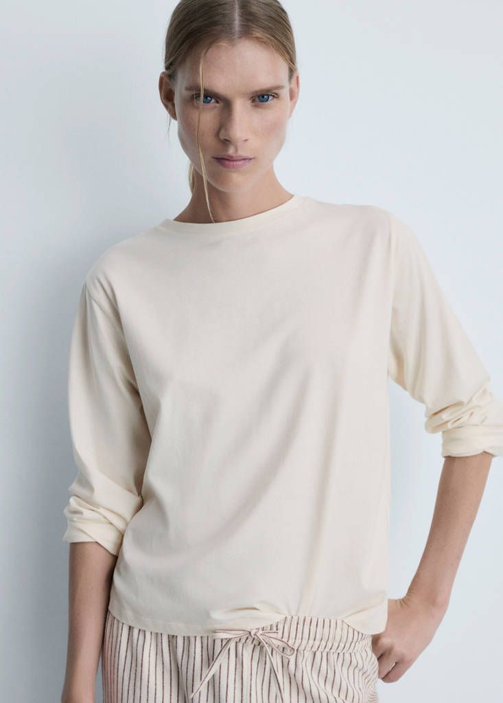 两件式法兰绒睡衣当前价格 [¥359.00 ]¥359.00选择颜色米色模特穿着160/64A (M)码,身高177cm 。选择尺码155/60A (S)160/64A (M)165/68A (L)170/74A (XL)175/80A (2XL)测量添加到愿望清单查看造型免费送货到商店直筒设计. 长款设计. 圆领. 长袖. 松紧系带腰身. 法兰绒面料. 印花设计. 两件套柔软棉质法兰绒睡衣. 法兰绒是一种理想的御寒面料,因为它能保暖和吸收湿气。法兰绒舒适耐用,非常适合秋冬之夜。. 柔软纹理. 长裤. 理想选择,适合追求在休息空间中结合风格与舒适的人士细节、成分和护理说明门店库存