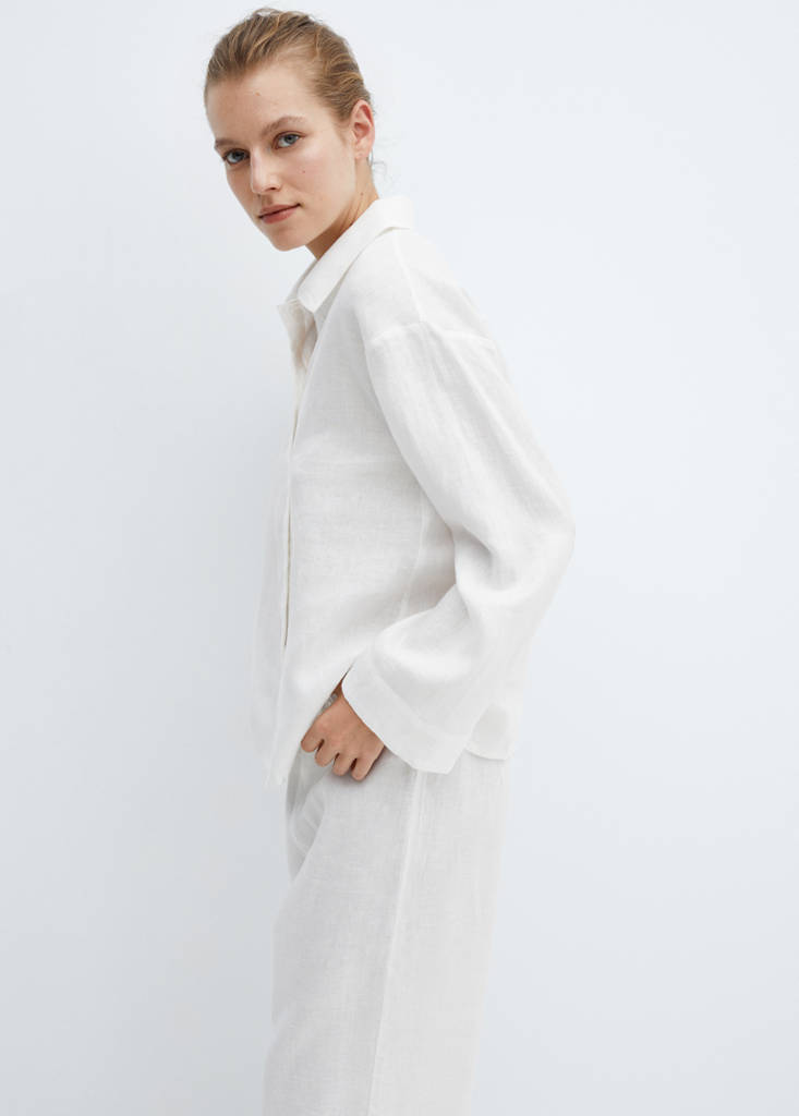100%亚麻睡衣衬衫当前价格 [¥759.00 ]¥759.00选择颜色白色模特穿着160/84A (M)码,身高177cm 。选择尺码155/80A (S)160/84A (M)165/88A (L)170/92A (XL)测量添加到愿望清单查看造型免费送货到商店100% 亚麻面料. 直筒设计. 衬衫领. 长袖. 正面系隐形纽扣. 整体造型细节、成分和护理说明门店库存 我们的材料亚麻布100%天然、透气、轻盈。亚麻是炎热潮湿气候下最舒适的纤维;速干且保暖。