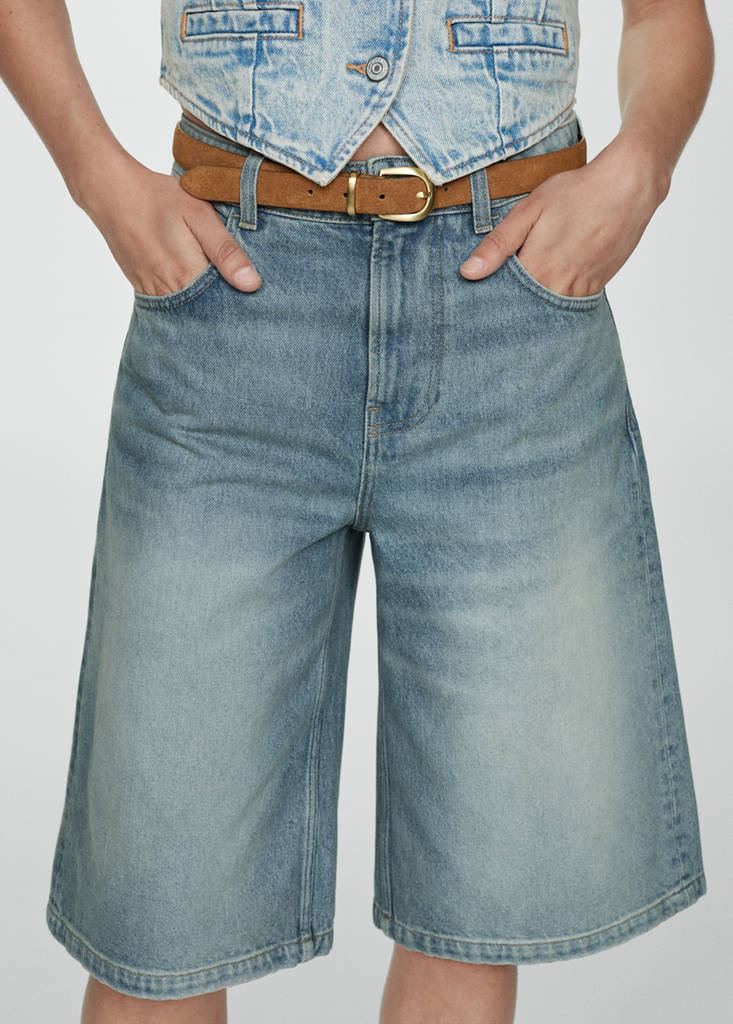 宽松牛仔短裤当前价格 [¥359.00 ]¥359.00选择颜色中蓝色模特穿着160/64A (36)码,身高179cm 。选择尺码155/58A (32)155/62A (34)160/64A (36)165/68A (38)170/72A (40)170/74A (42)测量添加到愿望清单查看造型免费送货到商店牛仔风格棉织物. 中腰. 宽松设计. 前面两个贴袋. 后面两个贴袋. 硬币口袋. 腰带环. 拉链和纽扣闭合细节、成分和护理说明门店库存 我们的材料回收棉至少20%这种纤维是从消费前和消费后的纺织废料中提取的,可以转化为新的织物。