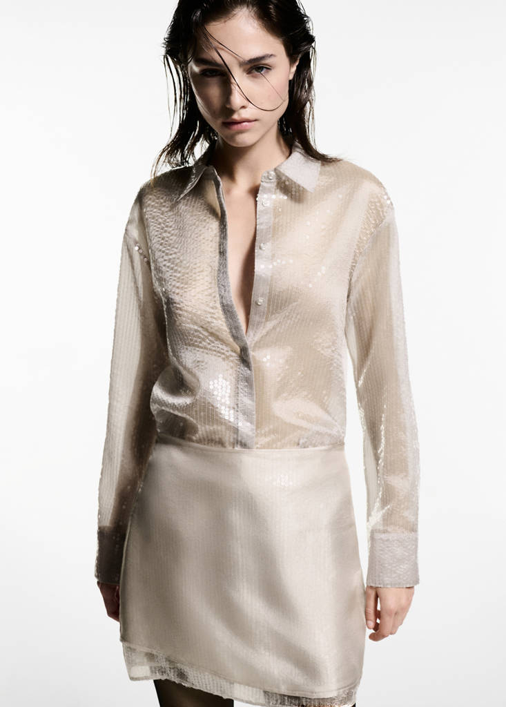 半透明亮片衬衫当前价格 [¥599.00 ]¥599.00选择颜色米色模特穿着160/84A (M)码,身高177cm 。选择尺码160/84A (M)165/88A (L)170/92A (XL)测量添加到愿望清单查看造型免费送货到商店亮片面料. 半透明面料. 直筒设计. 衬衫领. 长袖带系扣袖口. 暗扣前襟. 派对、典礼和圣餐系列. 精选系列. 整体造型精选的精致服装,用优质材料制成,为特殊场合创造一个现代柔美的衣橱。细节、成分和护理说明门店库存