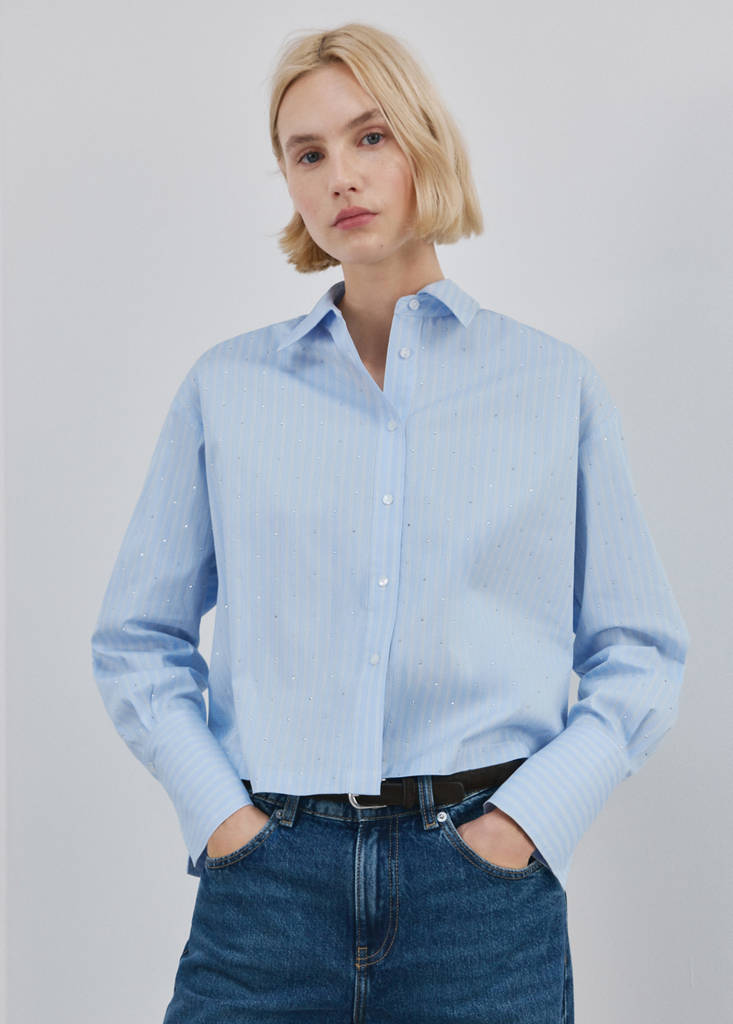 条纹亮片短款衬衫当前价格 [¥399.00 ]¥399.00选择颜色天蓝模特穿着160/84A (M)码,身高179cm 。选择尺码155/78A (XS)155/80A (S)160/84A (M)165/88A (L)170/92A (XL)175/96A (XXL)175/100A (3XL)尺寸指南添加到愿望清单查看造型免费送货到商店查看商店库存情况描述直筒设计. 短款设计. 条纹印花. 水钻细节. 衬衫领. 长袖带系扣袖口. 前扣闭合.查看详情分享